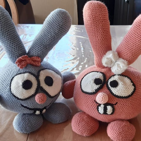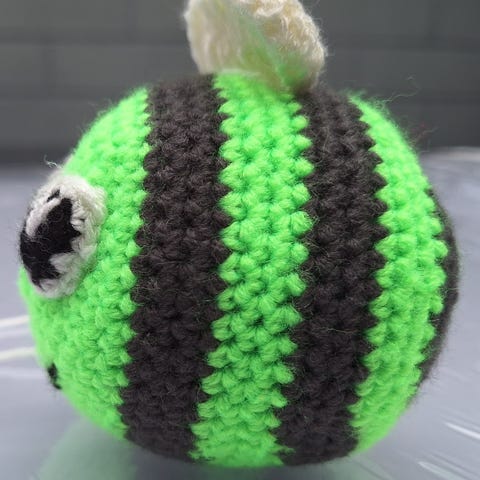 Hæklet smådyr legetøj i garn i forskellige farver. Figurerne er små og runde med broderede øjne og detaljer. De er hæklede i blødt garn med lys underside og farvet overside, velegnet som pynt eller som blødt legetøj til børn under opsyn. Leveres som sæt med flere forskellige farver.