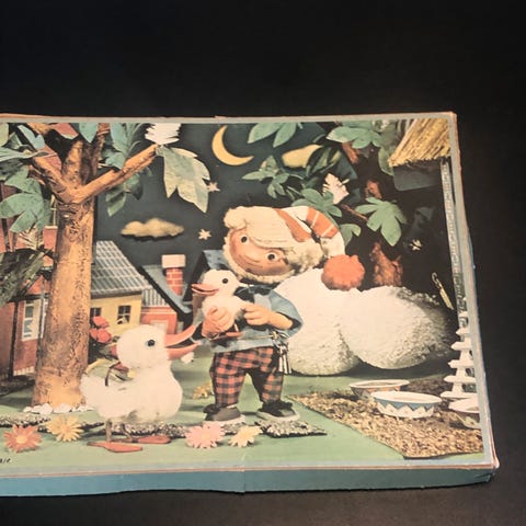 Julepostkort med farveillustration af barn, der trækker en hund på en kane i sneen under nattehimmel med måne og stjerner. Postkortet er ubrugtt og har standard opdelt bagside til adresse og tekst. Egnet til samling eller som julehilsen.