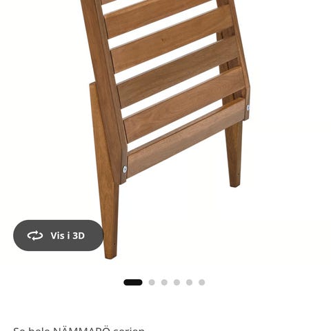 IKEA NÄMMARÖ ryglæn til modulsofa til udendørs brug. Ryglænet er udført i lysebrunt, bejdset træ med lameller og måler ca. 60x56 cm. Egnet som ryglænselement til NÄMMARÖ modulsofa og lignende havemøbler, hvor det kan monteres som støtte til siddemodul på terrasse, altan eller i have.