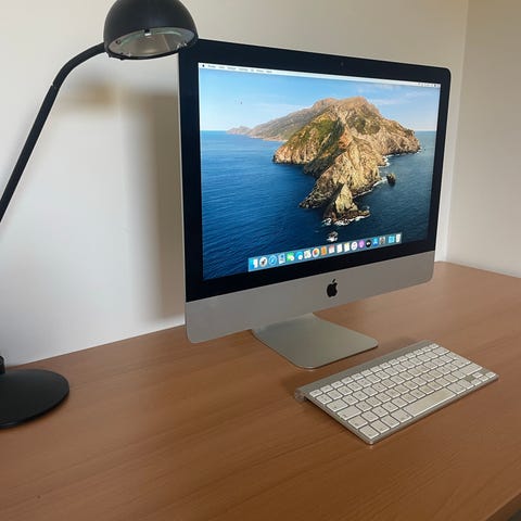 iMac’en er egnet til almindelige kontoropgaver, internetbrug og medieafspilning. Indbygget skærm, tastatur og mus/trackpad gør den velegnet som skrivebordscomputer i hjem eller på kontor.