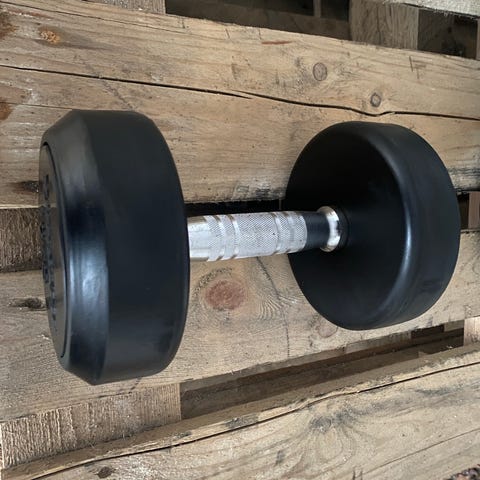 Håndvægt på 50 kg. Gummibelægningen beskytter gulv og reducerer støj ved træning. Velegnet til styrketræning, funktionel træning og øvelser som bænkpres, skulderpres og rows. Kan bruges i hjemmetræning, fitnessrum eller klubmiljøer.