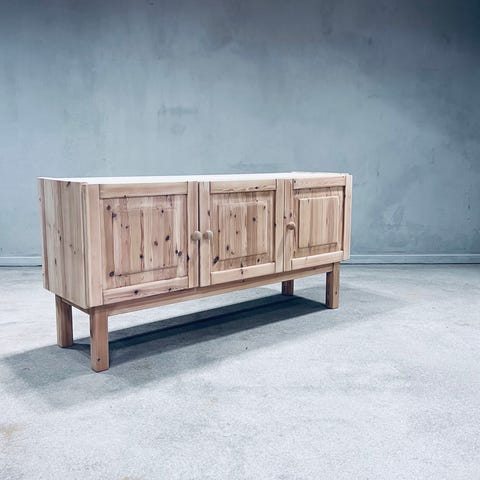 Skænken har 6 skuffer i midten og hylder bag lågerne