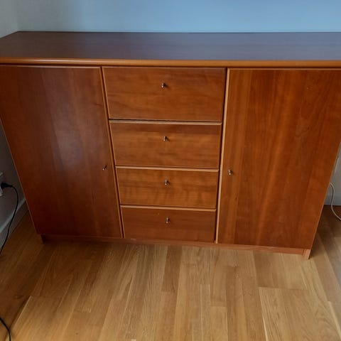 Flot, rummelig og meget velholdt skænk i kirsebær. Enkelt rids (se billede) ukendt design/mærke - ku ikke fjerne IKEA?