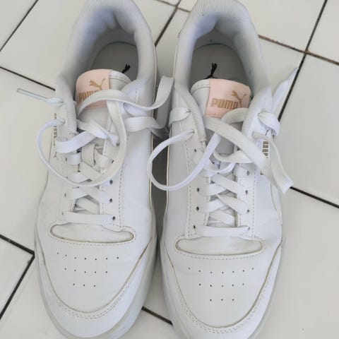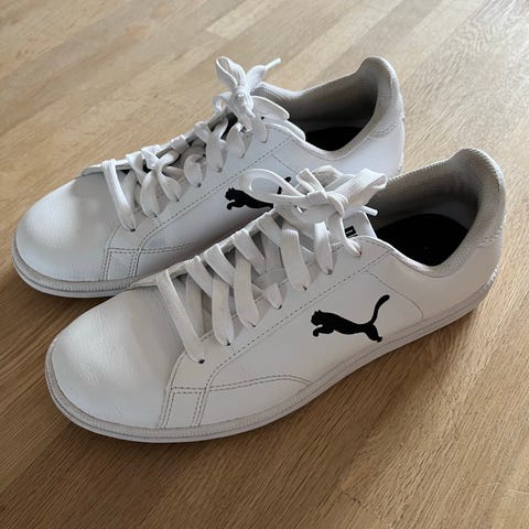 Puma sneakers i str. 39. sneakers i hvid med lysegrå detaljer. Overdelen er i syntetisk materiale med snørelukning, og sålen er kraftig med mønster for bedre greb. Velegnet til hverdagsbrug og fritidsaktiviteter.