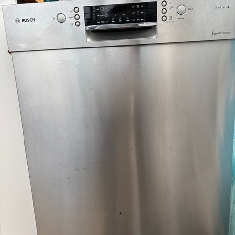 Bosch opvaskemaskine i rustfrit stål/front i stål. Maskinen er beregnet til indbygning under bordplade.