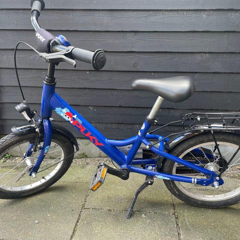 Puky børnecykel med 16" hjul i blå farve.