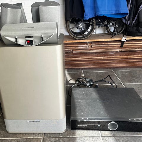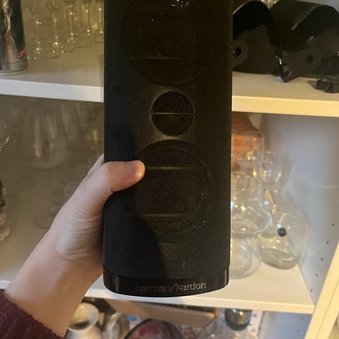 Harman Kardon HKTS200SUB højttalersæt 7/1 HKTS 30 i sort. Sættet består af en aktiv subwoofer med HKTS200SUB forstærkermodul samt flere matchende satellithøjttalere og en centerhøjttaler i cylindrisk/aflangt design. Tilslutninger på subwooferen omfatter linjeindgang (L/R), LFE-indgang, faseomskifter, niveau- og frekvensregulering samt strømtilslutning. Systemet er egnet til brug som hjemmebio 7/1-surroundsystem sammen med en kompatibel surroundreceiver eller forstærker. Farven er sort med højglansfinish på kabinetterne. ABSOLUT ENESTE FEJL PÅ SÆTTET ER AT STØVKLUDEN HAR FJERNET ET R. PÅ CENTERENHEDEN 😌😪😅 kan selvfølgelig høres , sub er meget svær at fotografere 🙃😊 ingen fejl i pianolak 😄 diverse væg ophæng medfølger , byd hvad du mener det skal koste 😉