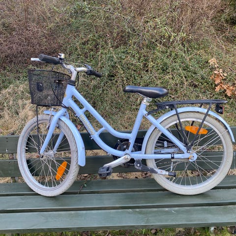 Mustang pige børnecykel med 20" hjul i mintgrøn / turkis farve. Cyklen har fastmonteret bagagebærer og kurv foran. Udstyret med 3 indvendige gear, hånd og fodbremse, skærme og kædeskærm, som beskytter mod snavs. Velegnet som hverdagscykel til børn i den størrelse, der passer til 20" hjul (5-8 år).