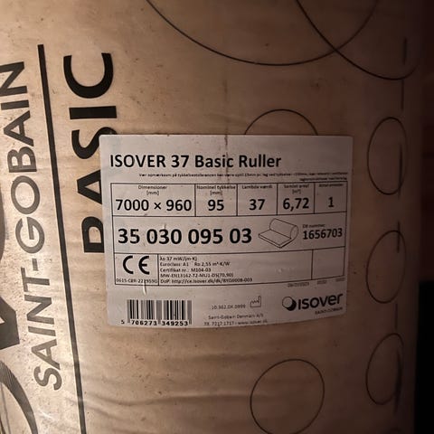 Derudover er der enkelt løs rulle med ca 3 meter og en plade i 95 mm tykkelse. .