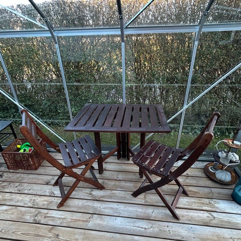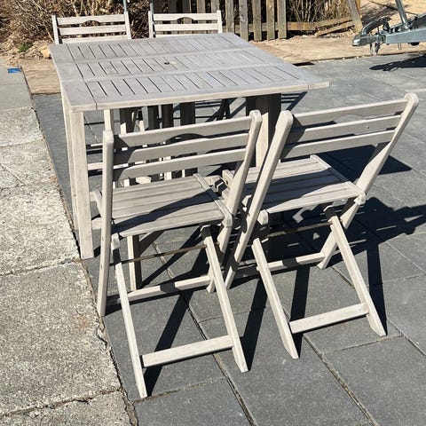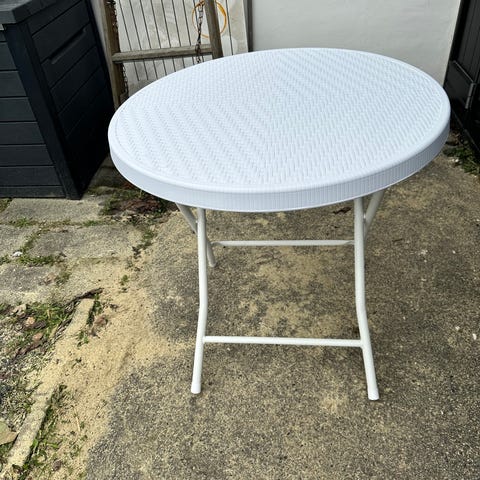 Ubrugt elegant hvidt klapbord ideelt til terrasse/ altan
