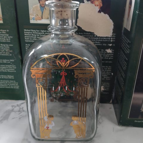 5 flasker fra Holmegård. 4 med julemotivdr, hvoraf 2 af dem har nedtælling til d. 24. Derudover en klukflaske med glasprop. Sælges samlet for 250,- eller individuelt til 75,- kr. stk.