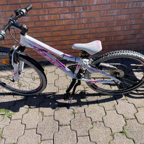 Børnecykel med 24" hjul i lilla farve. 3 indvendige gear, fodbremse og håndbremse. Kurv, bagagebærer, for- og baglygter og godkendt lås med nøgle. Alt fungerer som det skal og den kører godt. Passer til piger i alderen ca. 8-10 år.