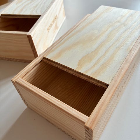 BoConcept opbevaringskasser i træ i flere farver. Kasserne har rammer og bund i lyst træ. Velegnet til opbevaring af småting og kan stables lille æske 15x15 cm