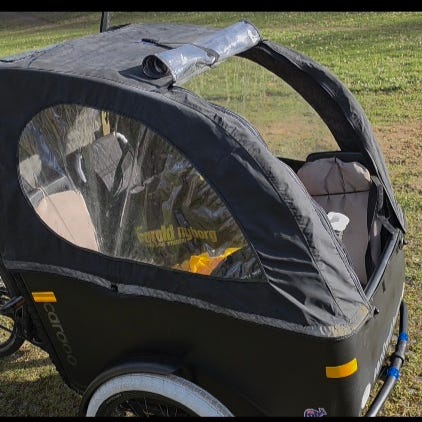 Babboe Curve kaleche med vinduer, som dækker ladet. Det er kun kalechen vi sælger og der medfører ikke stænger.