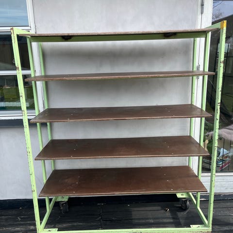 Vi sælger vores flotte reol fra DANSK. Brugt til køkkenudstyr og lign, men kan bruges til alt muligt. Også godt til sommerhus eller koloni.