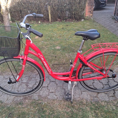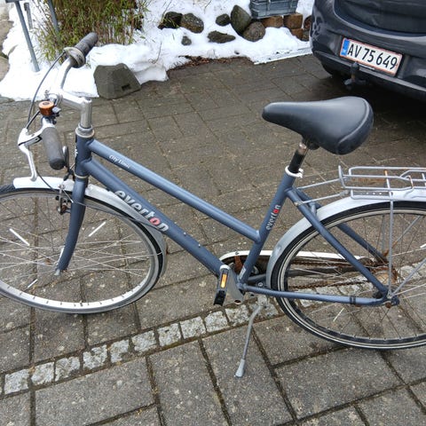 Kurv, lås, forbremse, Frakkeskåner, nye pedaler, nyere kæde og tandhjul.