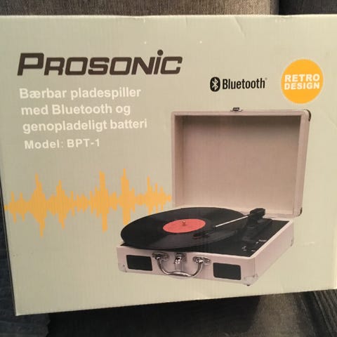 Transportabel pladespiller med mulighed for Bluetooth tilslutning for bedre lyd.
