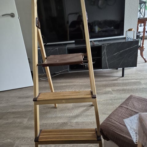 Cool brugt malertrappestige med den helt rigtige patina. Til brug eller pynt. 123 cm høl og 43 cm bred. 170 cm med topgelænder.