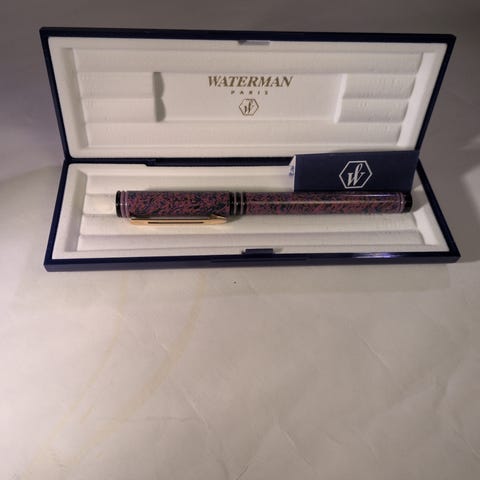 Smuk, ubrugt Waterman L'etalon fyldepen i massivt Sterlingsølv. Spids i 18 karat guld. Ubrugt og fejlfri fransk fyldepen. Vaffelvævet mønster.