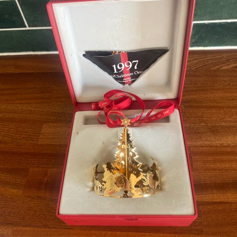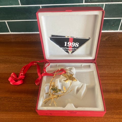 Georg Jensen 2009 juleuro forgyldt med rødt bånd.