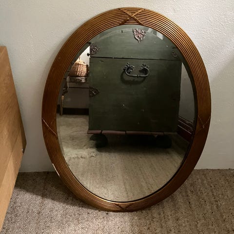 Ovalt spejl med ornamenteret ramme