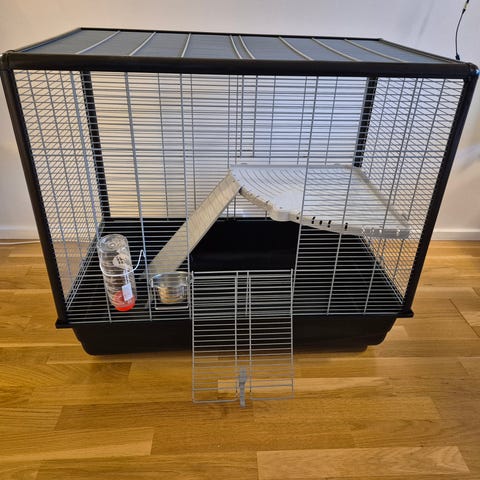 Bur er opgradere med rum fordeler og hjul, så den er nemmere for flytte rundt i hjem. Den kan bruges til store og små dyr og alle tilbehør følge med.