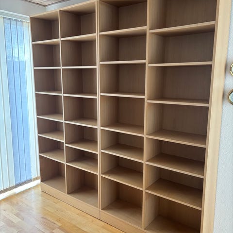 Denne reol i egetræsfiner har flere hylder, der giver god opbevaringsplads til bøger, dekorationer eller andre genstande. Dens enkle design gør den velegnet til forskellige rum og indretningsstile. Perfekt til stuen, kontoret eller soveværelset. Reolen er fra et røgfri hjem.