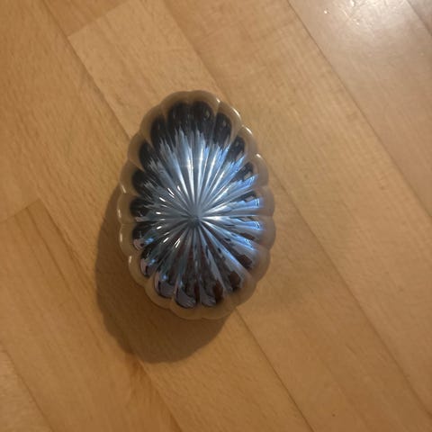 Georg Jensen Bernadette teæg i rustfrit blank stål. Højde 182 mm, ægget 38 mm. Georg Jensen-logo på selve sien. Brugt en gang, som nyt. Design udgået af produktion. Oprindeligt kr 298,00.