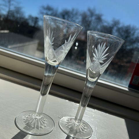 2 stk snapseglas med snoet stilk
