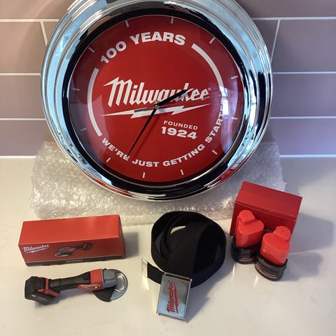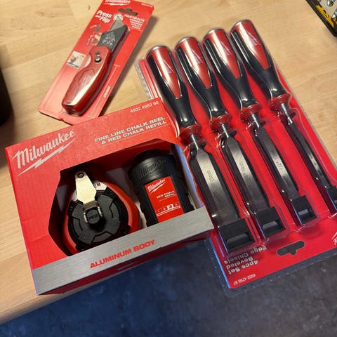Milwaukee håndværktøjssæt med flere dele. Sættet omfatter et sæt stemmejern, en universel hobbykniv, en multiskruetrækker med flere bits samt en termokop/flaske fra Milwaukee Packout-serien. Værktøjet er egnet til generelle håndværksopgaver som træarbejde, montage og reparation. Termokoppen er beregnet til opbevaring af varme eller kolde drikke på arbejdspladsen eller under transport. Alle dele leveres i original emballage som vist på billederne.