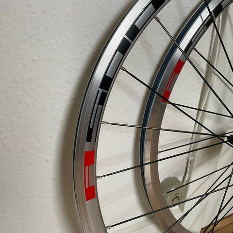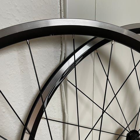 Hjulene har lukkede lejer, så de ruller bare godt. Hjulene har ikke kørt meget hvilket også kan ses på billederne. Der sidder 28.eger både for og baghjul.