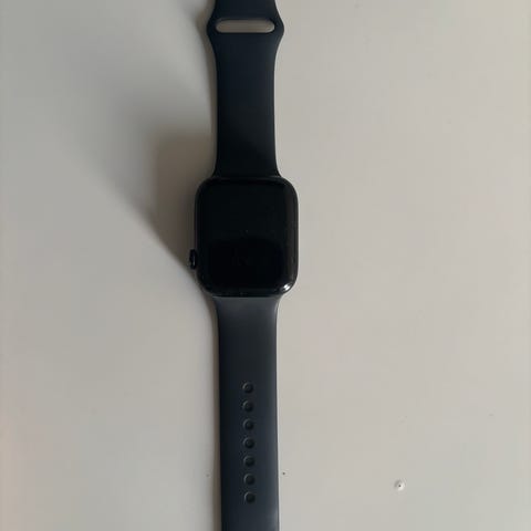 Apple Watch Series 7 smartwatch med 45 mm urkasse i sølvfarvet aluminium. Uret har rektangulær touchskærm og digital krone i højre side. Leveres med finmasket metalrem i sølvfarve med magnetlukning. Velegnet som hverdagsur med smart-funktioner som notifikationer, aktivitets- og sundhedstracking samt tidsvisning. Batteritilstand kan ses på skærmen, og uret kan bruges sammen med kompatible Apple-enheder.
