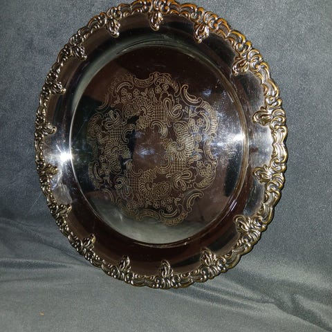 Meget fint sølv plet fad med smukt mønster på kant. Længde: 36, bredde: 28 cm