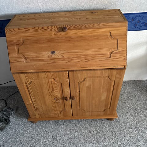 Skænk med masser af plads. Minder om en købmandsdesk. Længde 145 cm. Dybde 52 cm. Højde 80 cm.