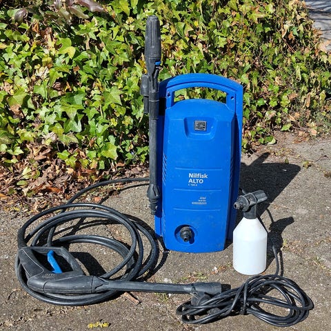 Nilfisk C 105.6-5 højtryksrenser i blå. Kompakt model i Nilfisk Compact-serien med maksimalt tryk på 105 bar. Kun brugt et par gange ellers bare stået i tør kælder. Kan sendes for købers regning