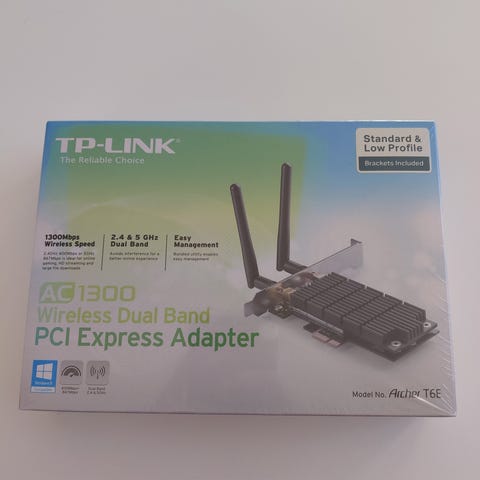 Sælger dette TP-Link dual band WiFi-kort til stationære computere. Sættes i en PCIe-slot på bundkortet og giver trådløs forbindelse uden brug af USB-dongle