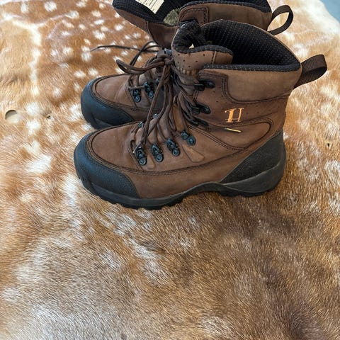 Scarpa vandrestøvler i brun læder med Gore-Tex-membran. Støvlerne har snørelukning med metaløjer og kroge samt polstret skaft for ekstra komfort. Ydersålen er i gummi, velegnet til vandring og udendørs brug i fugtige forhold.