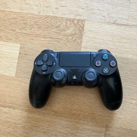Sony DualShock 4 controller i sort. Trådløs controller til PlayStation 4 med indbyggede analoge styrepinde, retningsknapper, skulderknapper og touchpad. Egnet til gaming på PlayStation 4-konsoller og kompatible enheder, hvor DualShock 4 understøttes.