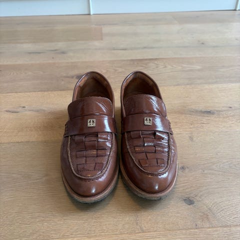 Billi Bi loafers i str. 36. Skoene er i brunt laklæder med mønsterprægning på overlæderet. Klassisk penny-loafer design med rund snude og lav hæl. Indvendig læderforing og solid ydersål. Velegnet som hverdagssko eller pænere brug.