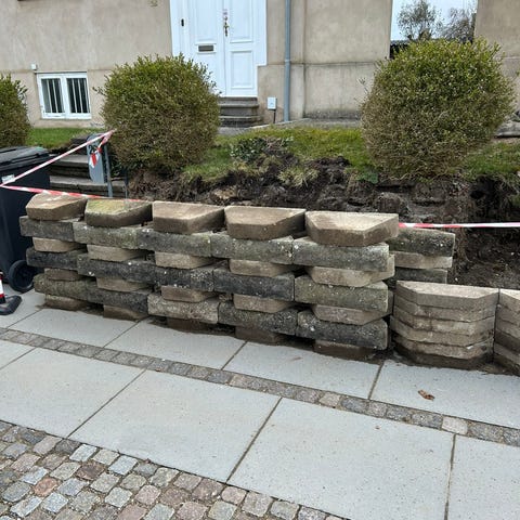 Betonsten til opbygning af havemur i grå nuance. Stenene er formet med trin/knæk, så de kan stables til en lav støttemur eller afgrænsning i have og indkørsel. Velegnet til eksempelvis støttemidler, bedafgrænsning, niveauforskelle eller indramning af græsplæne og buske. Antal, mål og vægt kan oplyses ved opmåling på stedet.