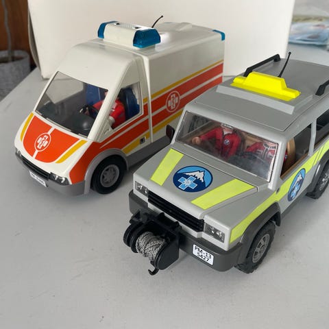 Kæmpe playmobil sæt, inklusive alverdens småt tilbehør - her er til mange timers leg! 😎Brandbil med stige som kan køres ud, skraldebil, ambulance, politibil og en politihelikopter med hejs og skarpt lys under.