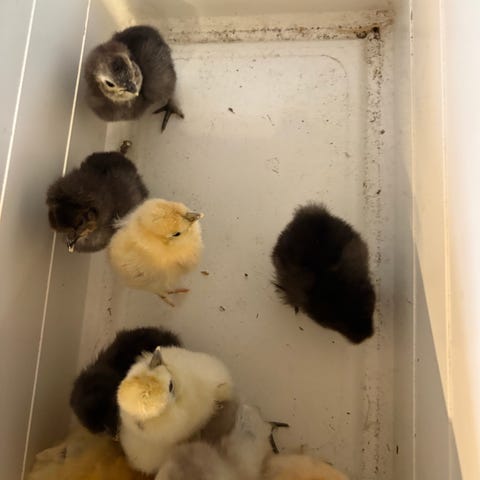 We have some serama mix chicks that hatched between March 27-31. They will be dwarf to size when grown. Minimum purchase is 2 chicks. The price is 35 kr. per piece and then increases +5 kr. every week.