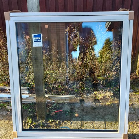KPK fast vindue i hvid ramme. Mål ca. 1900 x 2120mm ifølge mærkaten. Vinduespartiet er uden opluk og er egnet som fast glasparti i ydervæg eller lignende, hvor der ønskes stort lysindfald. Leveres med energirude ifølge producentens mærkning på karmen og glasset. Stadig fabriksgaranti.