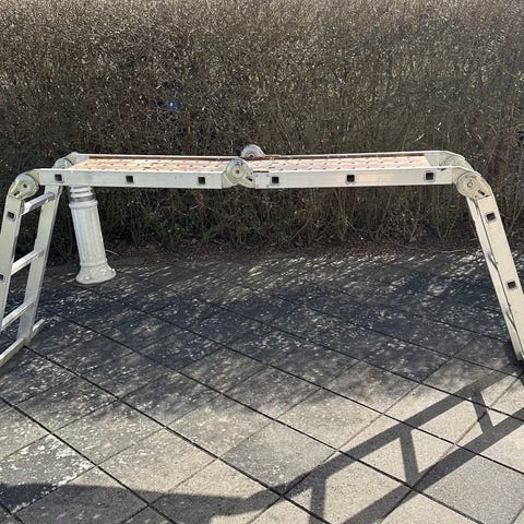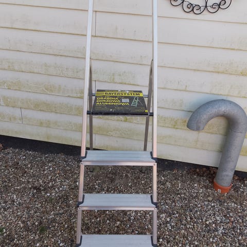 Werner stige med platform til malergrej og værktøj. Stigen har flere brede trin. Egnet til arbejde i hjemmet, på terrasse eller i have, hvor der er behov for ekstra arbejdshøjde. Kvalitets stige med rigtig god stabilitet kan klappes sammen for nem opbevaring. Knap 2 m høj. Nypris 2500+
