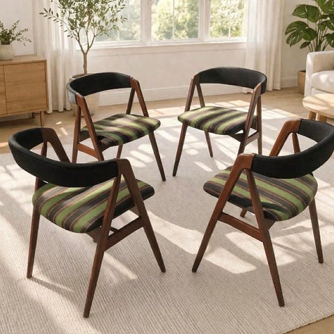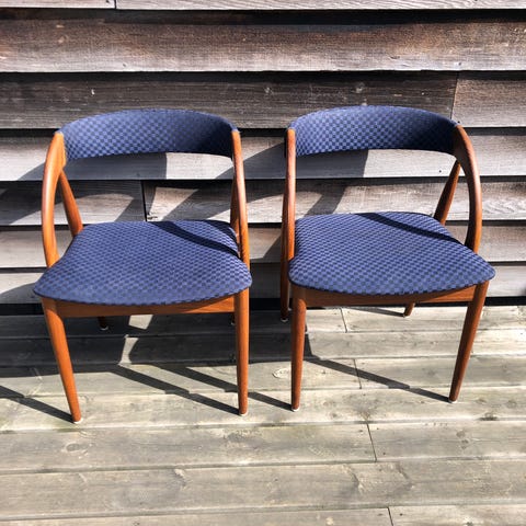 Sælger 4 flotte retro spisebordsstole i teaktræ i klassisk dansk design fra 60’erne/70’erne.