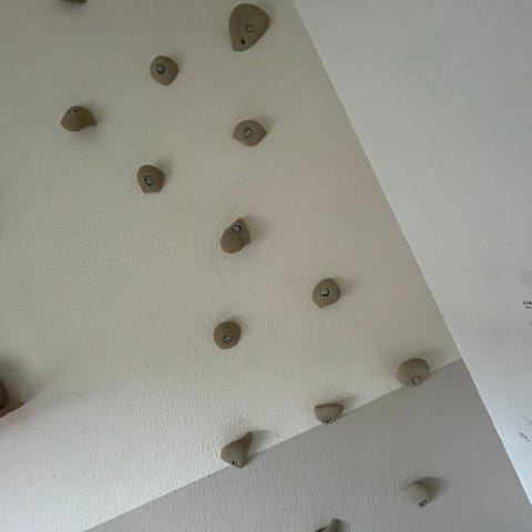Thats mine 8 stk. lys grå sæt klatregreb med tilhørende bolte og rawlplugs. Grebene er grå og i hårdt, struktureret materiale, velegnet til montering på klatrevæg eller træplade. Forskellige former og størrelser giver mulighed for variation i greb og sværhedsgrad. Leveres som vist på billederne med matchende monteringsbeslag.