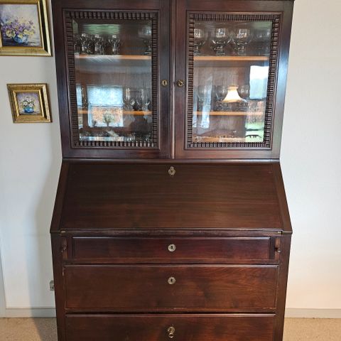 Mahogni sekretær vitrineskab