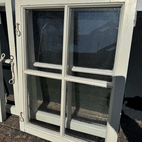 6 stk. Kernetræsvinduer - der holder. Træet er helt i orden - ingen råd.