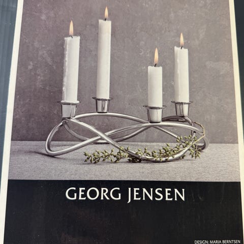 Georg Jensen lysestage til fyrfadslys i messingfarvet metal, adventsstage.