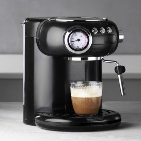 Lav din egen expresso, cappuccino eller latte med denne helt nye (ubrugte) Caffe Lusso 120129 kaffemaskine med roterbar mælkeskummer. Maskinen er udstyret med en pumpe med et tryk på 15 bar samt en aftagelig vandtank på 1,8 liter. Ovenpå maskinen findes en varmeplade, som kan lune kaffekopperne.